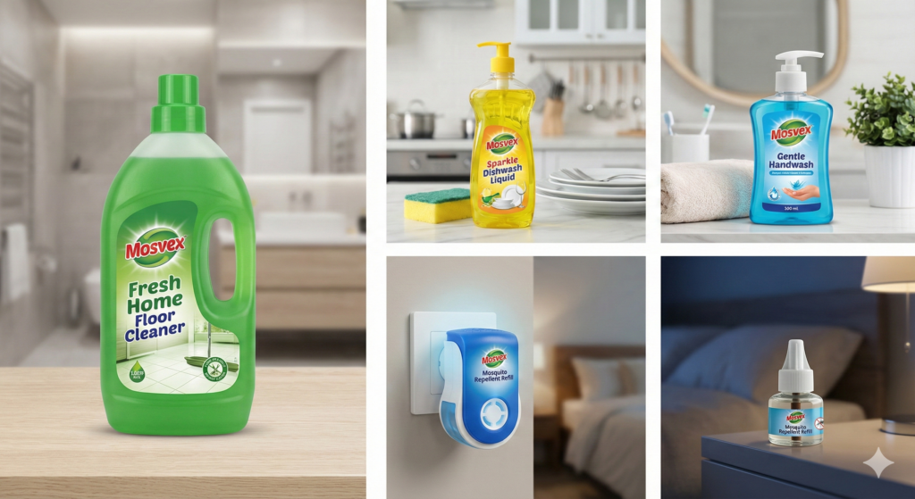 From sparkling floors to germ-free hands and mosquito-free nights, MOSVEX delivers trusted performance you can rely on.